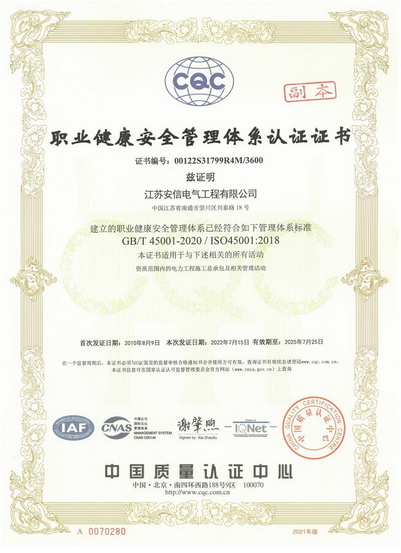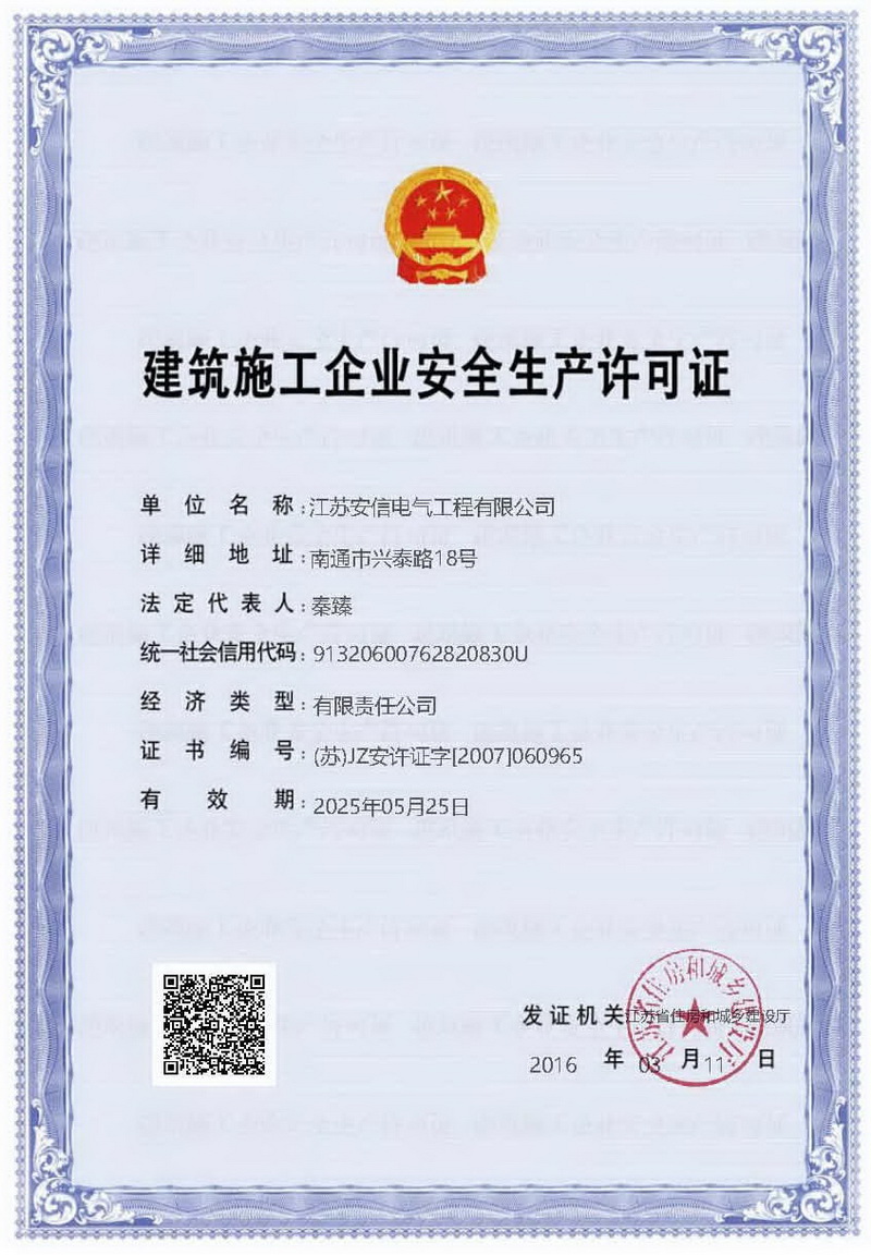 在創(chuàng)業之初,公司就堅持高起點的戰(zhàn)略思路,廣納賢才,集聚行業精英,創(chuàng)新發(fā)展,做優(yōu)企業品牌。現已取得:承裝二級、承修二級、承試二級,電力工程施工總承包二級,輸變電工程專業承包二級,建筑工程施工總承包二級,建筑機電安裝專業承包二級,地基基礎專業承包二級資質證書,并通過了質量、環(huán)境、職業健康和安全管理體系認證,確保各項工作有序管控。
